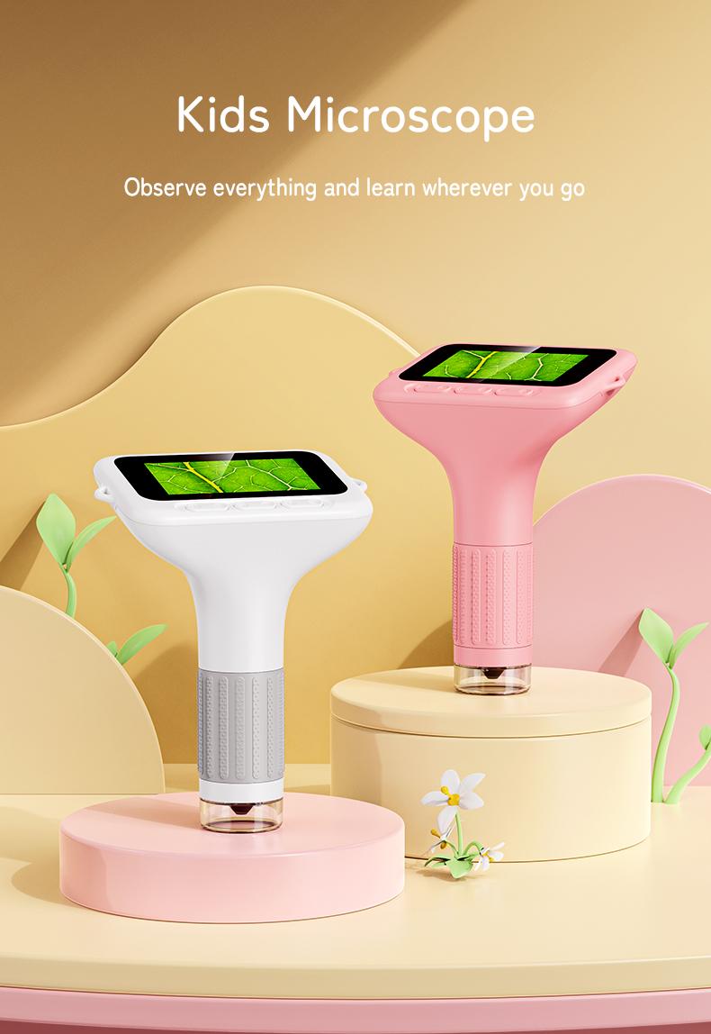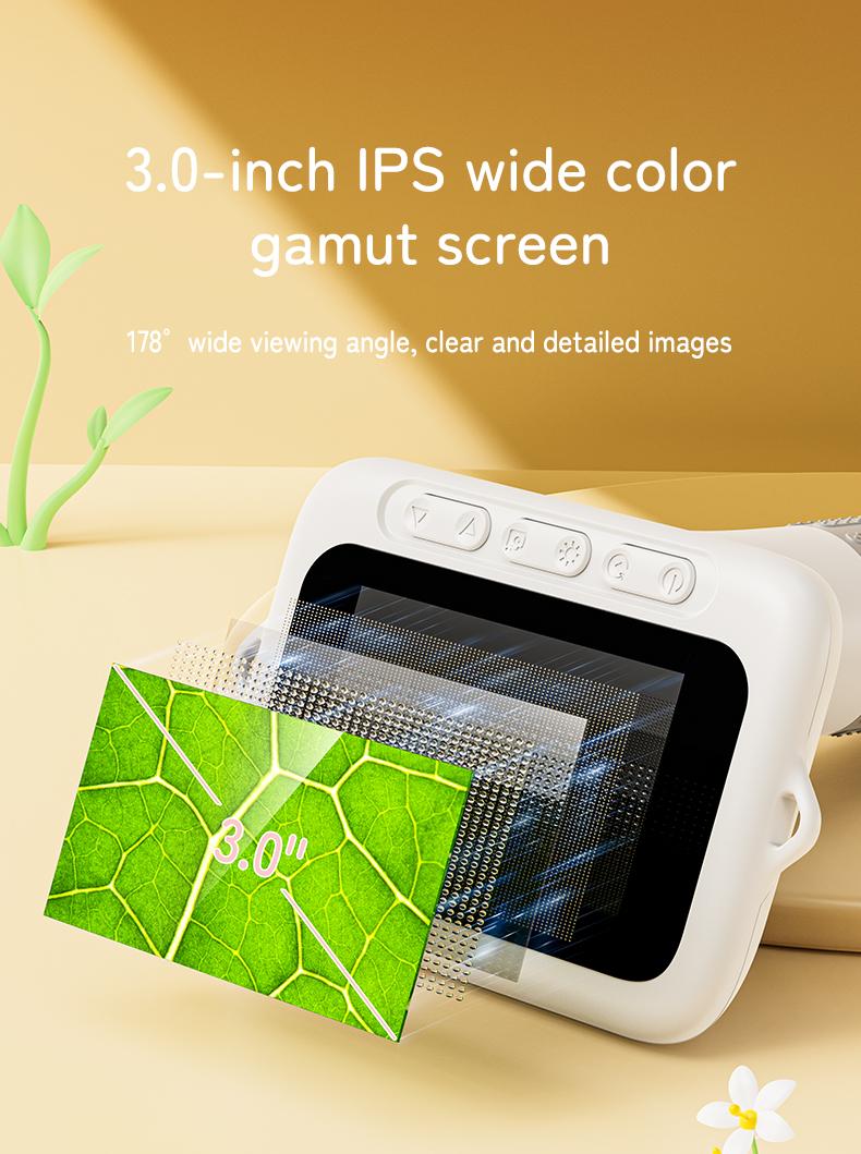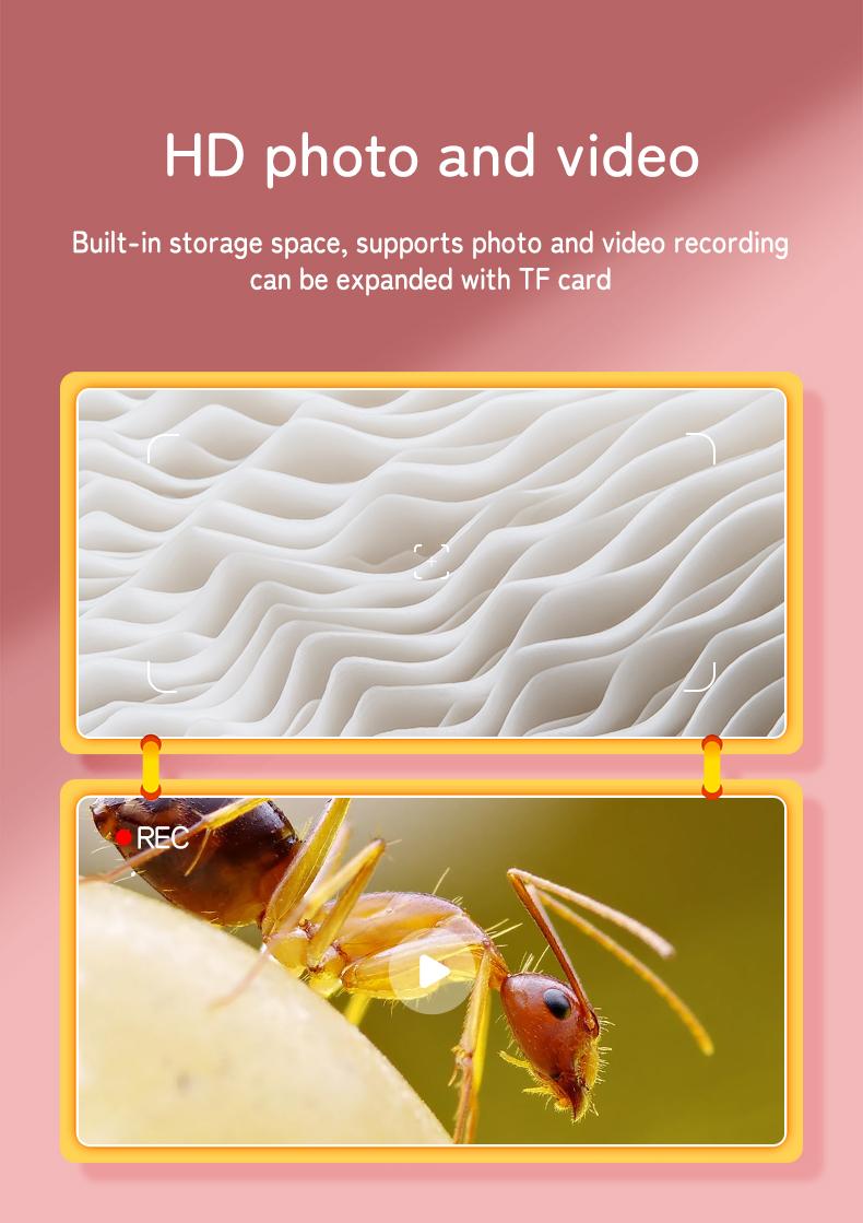 【1080P 3-inch Screen】This kids microscope features a 3-inch IPS HD screen with a 1080P resolution, vibrant colors, and clear image quality. The large screen allows kids to easily observe details and explore the fascinating microscopic world in real time.