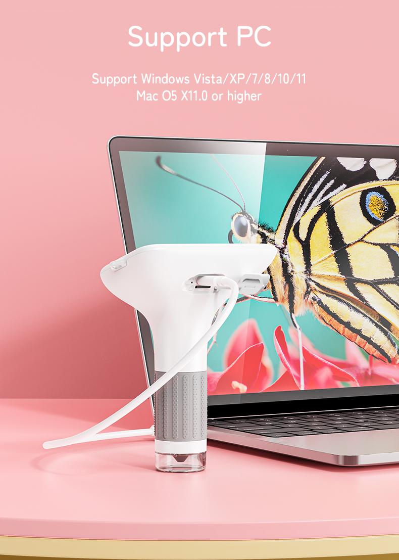 【Supports Connect with PC] - USB digital microscope connects to a computer via USB cable - Supports Windows Vista/XP/7/8/10/11, MacOS X 11.0 or higher