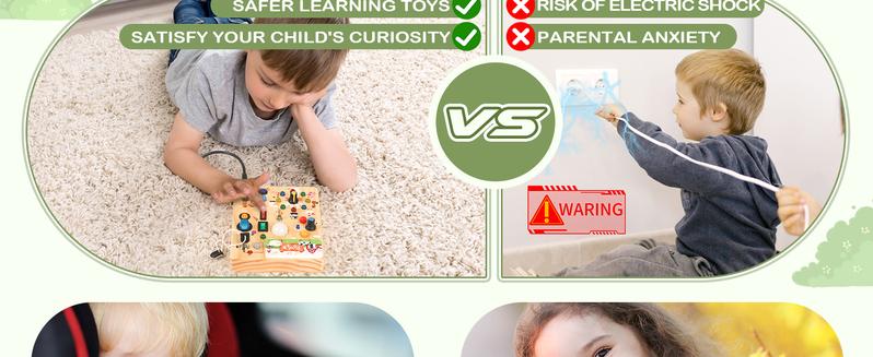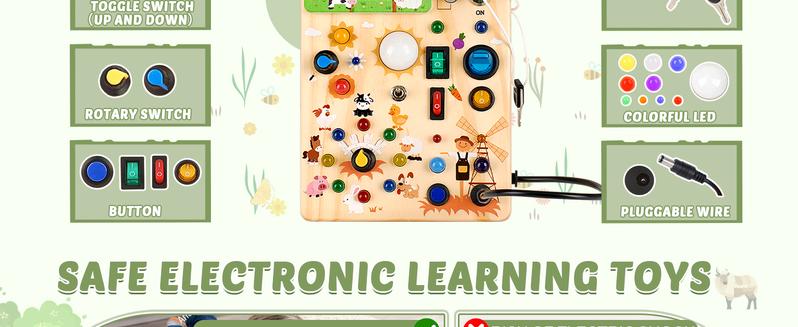 [Montessori Busy Board for Toddlers] Our busy board is placed different complexity switches, which include light bulbs that match the light of the switch. There are 10 different switches and 19 LED light bulbs set on this busy board. This sensory board will help your children enjoy hours of entertainment. Requires 2 AAA batteries (batteries not included).