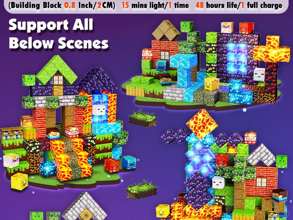 【Interactive & Entertaining】 The magnetic building blocks set includes an instruction manual paper and 14 different patterns blocks. These magnetic blocks for kids can build structures, and scenes with these magnetic toys. Each cube connects easily for unlimited stacking and construction variations.